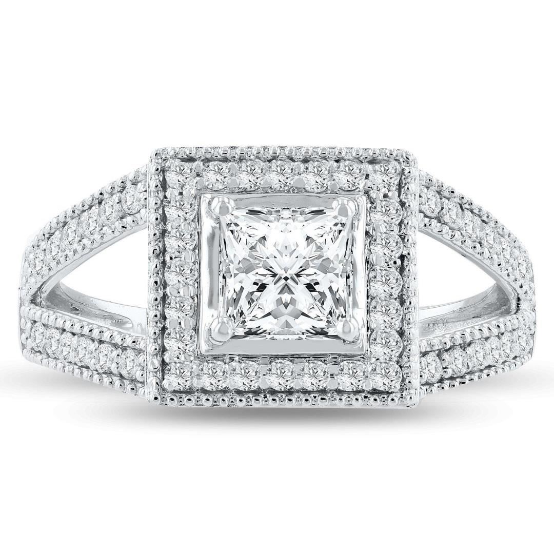 One electronically tested platinum ladies cast diamond unity ring. The featured diamond is set within a diamond bezel supported by diamond set split shoulders, completed by a two and one-half millimeter wide band. Bright polish finish with milgrain detailing throughout. Trademark is Orianne. Identified with markings of "PT950". Condition is new, good workmanship. One prong set square modified brilliant cut diamond, measuring 4.88 x 4.64 x 3.62mm exact weight 0.71ct. Laser inscribed GIA 2181214126. GIA Diamond Grading Report attached. Graded loose prior to setting in the GIA Laboratory, Report #2181214126. Clarity VS-2 Color E Depth 78.0% Table 79.0% Forty-Eight prong set round brilliant cut diamonds approximate total weight of 48 Stones = 0.29ct. Graded in the setting. Clarity VS-1 to VS-2 Color D - F Total Weight of Diamonds 1.00 ct. Total Weight of Ring 7.36 gm #Size: 7