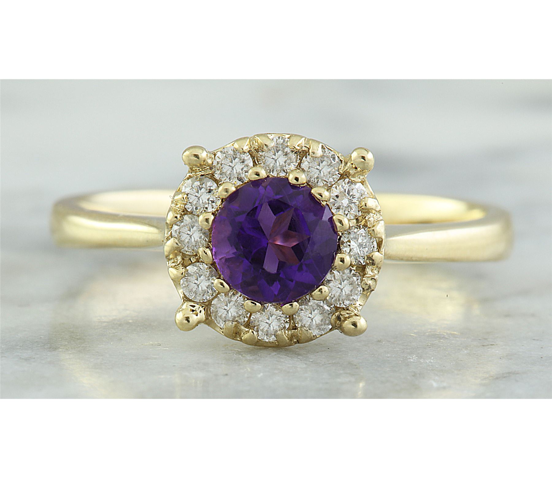 0.72 CTW Amethyst 18K Yellow Gold Diamond Ring