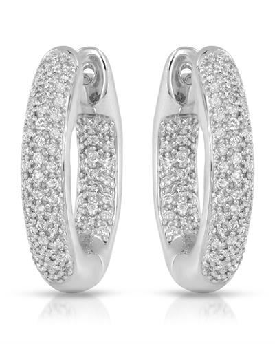 REF-118M2H - SKU: JF350842 ---- 0.72 CTW White Round Diamond Hoop Earring 14K White Gold
