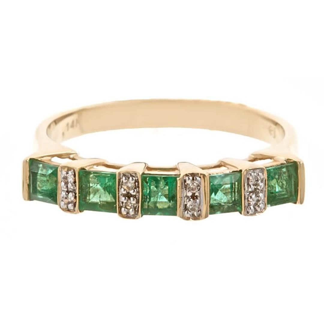 One Ring featuring: 14KT Gold weighing 2.5 grams containing Emerald with an approximate weight of 0.72ct, Diamond with an approximate weight of 0.03ct, and with an approximate weight of ct.