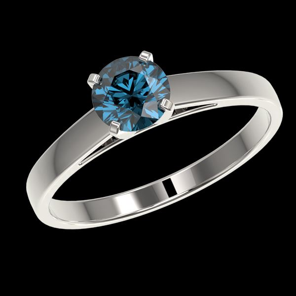 REF-70M5H -36485 ---- 0.73 CTW Certified Intense Blue SI Diamond Solitaire Engagement Ring 10K White Gold ---- Luxury Designer Brand Ring Appraised at $5,150 Certificate Number US36485 10k White gold, Ring Size is 7, Ring measuring approx. Uniform, weighing in total approx. 3 grams. Made in the USA and is stamped 10k, Main stone 0.73 carat total weight containing 1 pieces of Intense Fancy Blue color with SI quality Round shape cut Diamond , Stone #2 carat total weight containing pieces of color with quality shape cut