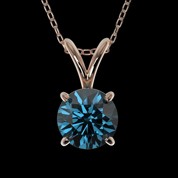 REF-82T5M -36743 ---- 0.73 CTW Certified Intense Blue SI Diamond Solitaire Necklace 10K Rose Gold ---- Luxury Designer Brand Necklace Appraised at $6,050 Certificate Number US36743 10k Rose gold, Necklace Size is 16 Incehs, Necklace measuring approx. Uniform, weighing in total approx. 2 grams. Made in the USA and is stamped 10k, Main stone 0.73 carat total weight containing 1 pieces of Intense Fancy Blue color with SI quality Round shape cut Diamond , Stone #2 carat total weight containing pieces of color with quality shape cut