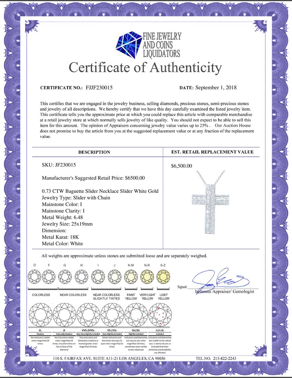 REF-83X6R - JF230015 ---- 0.73 CTW Baguette & White Round Diamond Necklace 18K White Gold