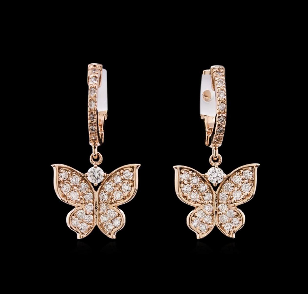 One pair of earrings: 14KT rose gold weighing 4.50 grams containing diamonds with a total weight of 0.73ct.