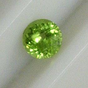 ROUND SHAPED PERIDOT. IT WEIGHTS 0.74 CTS AND MEASURE 5.5 MM