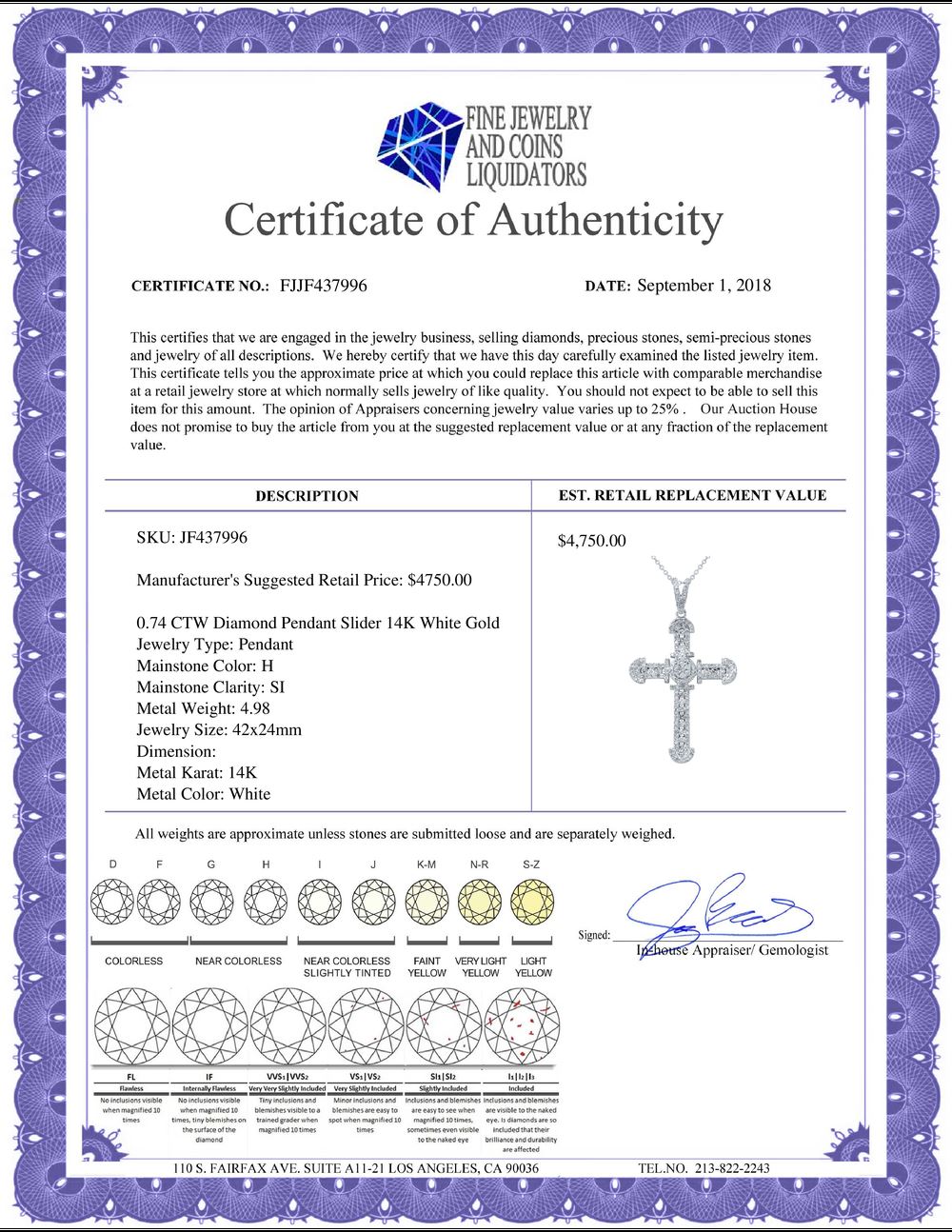 REF-61H7M - JF437996 ---- 0.74 CTW White Round Diamond Pendant 14K White Gold