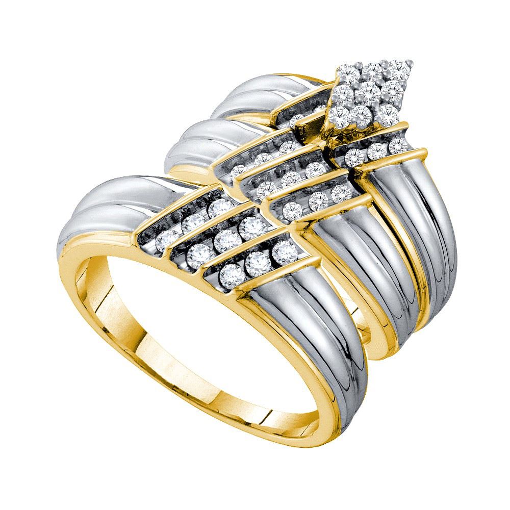 REF-135F8M ---- 0.74 CTW His & Hers Natural Diamond Cluster Matching Bridal Ring 14K Multi-Tone Gold - SKU: GD54942