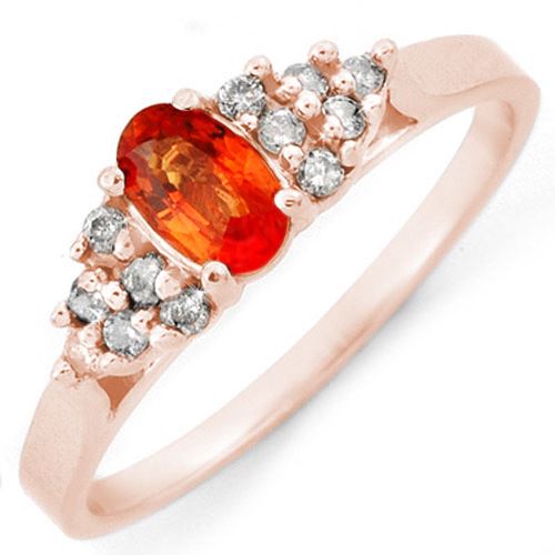 REF-27H6A -10475 ---- 0.74 CTW Orange Sapphire & Diamond Ring 14K Rose Gold ---- Luxury Designer Brand Ring Appraised at $1,800 Certificate Number US10475 14k Rose gold, Ring Size is 6, Ring measuring approx. 1/2" x 3/16" , weighing in total approx. 2.6 grams. Made in the USA and is stamped 14k, Main stone 0.62 carat total weight containing 1 pieces of Translucent Orange color with AAA quality Oval shape cut Sapphire , Stone #2 0.12 carat total weight containing 12 pieces of H-I color with VS/SI quality Round shape cut Diamond