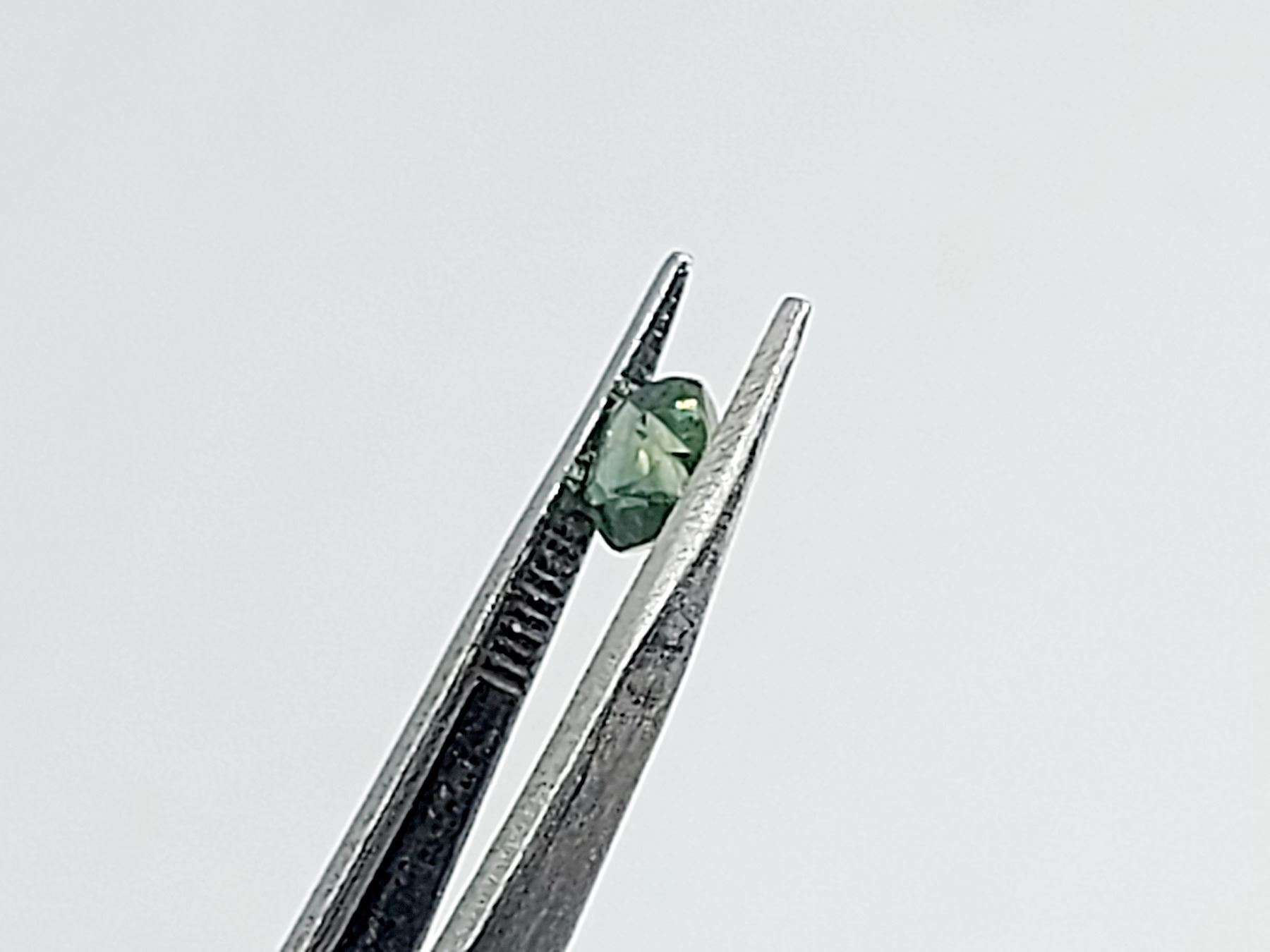 0.74 ct. 5 x 4.8 mm Colour: Bluish Green , Shape: Fancy Cut , Clarity: SI , Luster: Exceptional , Origin: Australia Heated