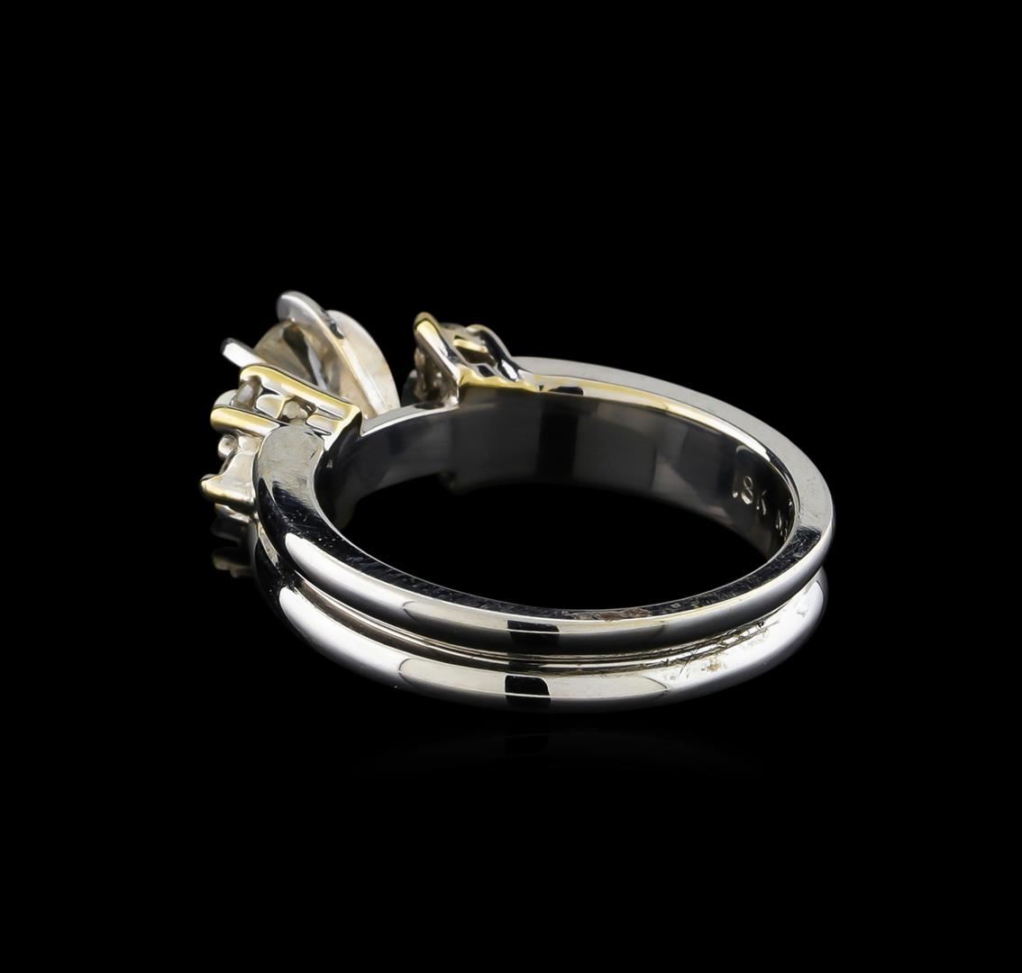 One electronically tested 18KT white gold lady's cast wedding ring with a cathedral shank with a bright polish finish. The featured lady's ring has a double shank measuring 3.78 millimeters wide. Identified with markings of "18K". Condition is new, good workmanship. Containing: One prong set round brilliant cut diamond, measuring 4.73 - 4.71 x 2.97mm (depth est.) approximate weight of 0.42ct. Graded in the setting. Clarity: SI-2. Color: J - Good Six prong set round brilliant cut diamonds, measuring 2.40 - 2.35 x 1.48mm (depth est.) approximate total weight of 6 Stones = 0.32ct. Graded in the setting. Clarity: SI-1 to SI-2. Color: H - I. Cut Good. Total Weight of Diamonds 0.74ct. Total Weight of Ring 6.50gm. GAS Appraised at $3,875.00.