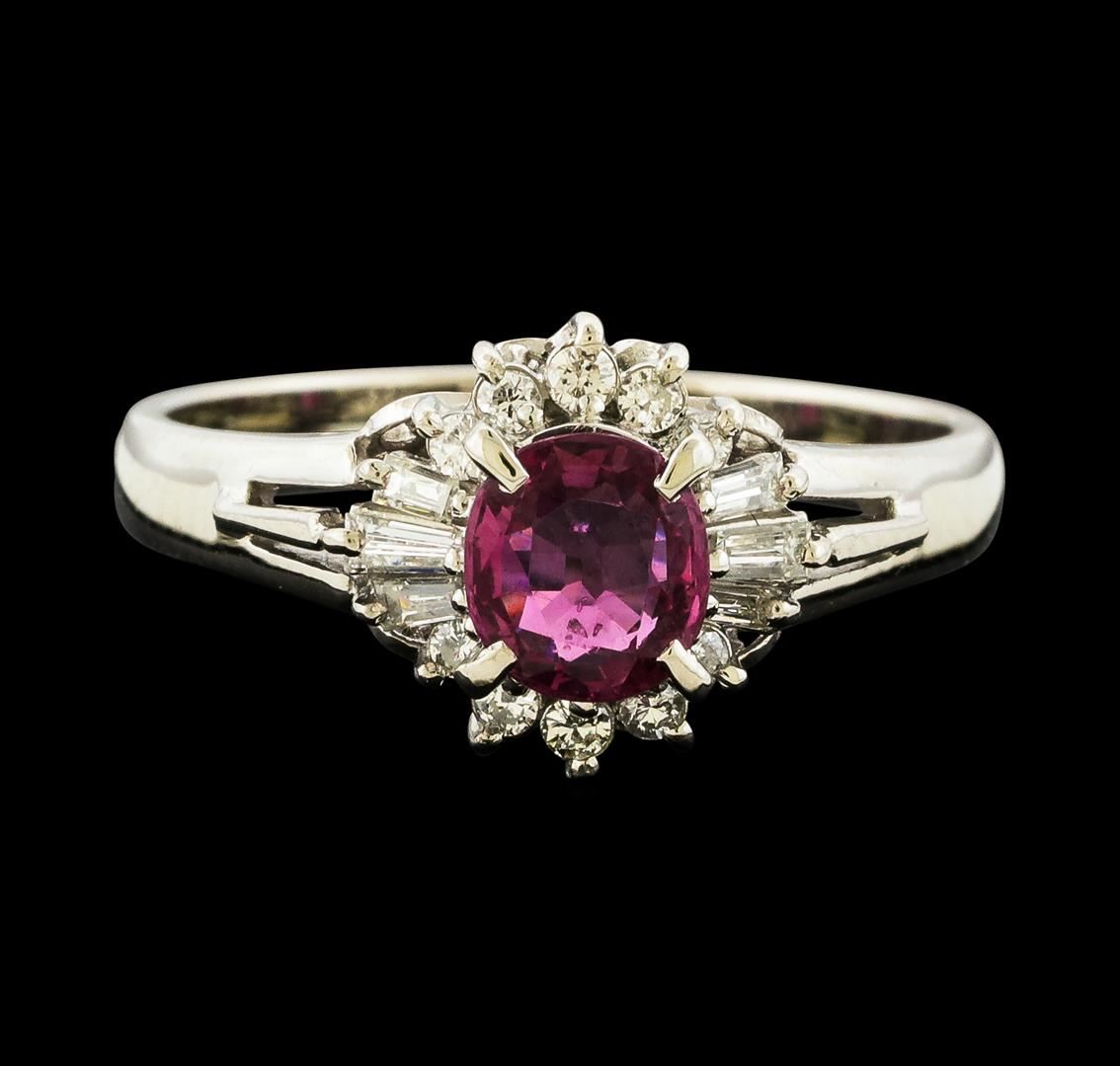 One ring featuring: Platinum containing Ruby with a total weight of 0.74ct and Diamonds with a total weight of 0.24ct. Total Weight of Ring: 4.8 grams.