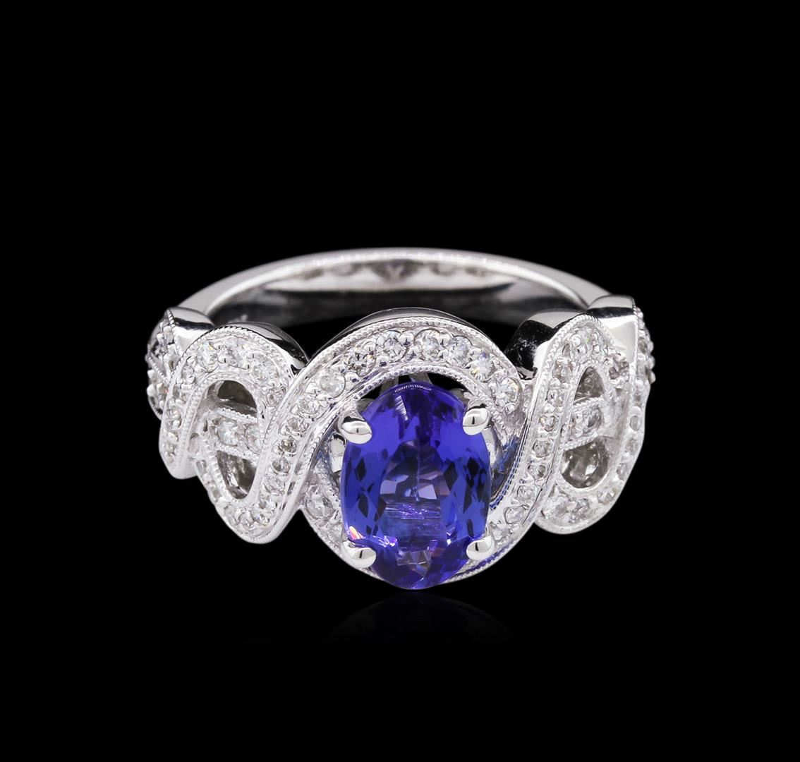 One ring featuring: 14KT white gold weighing 7.31 grams containing one tanzanite with a total weight of 0.74ct and diamonds with a total weight of 0.65ct.