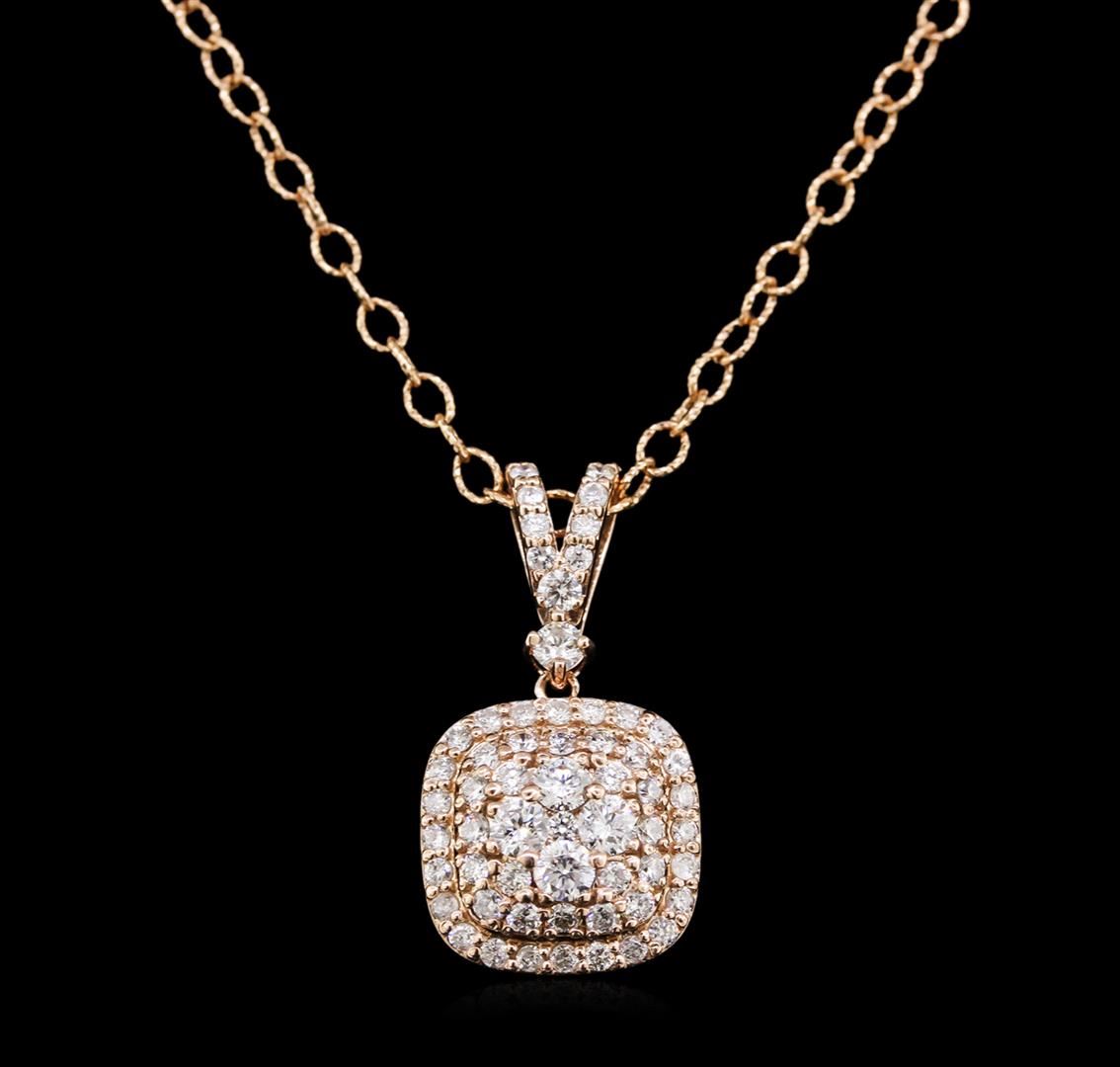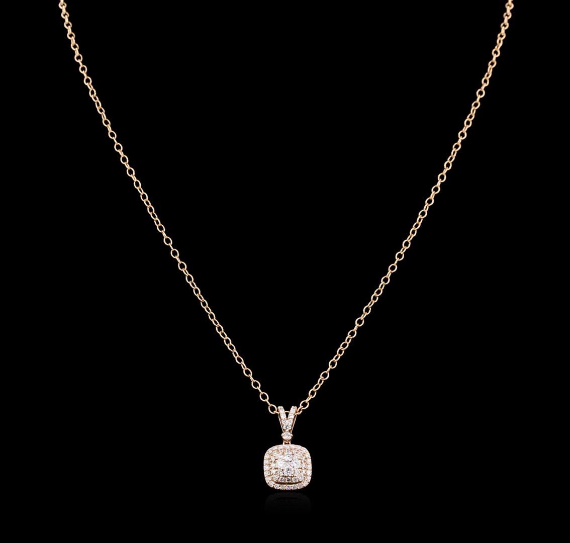 One pendant with chain featuring: 14KT rose gold weighing 2.15 grams containing 61 diamonds with a total weight of 0.74ct.