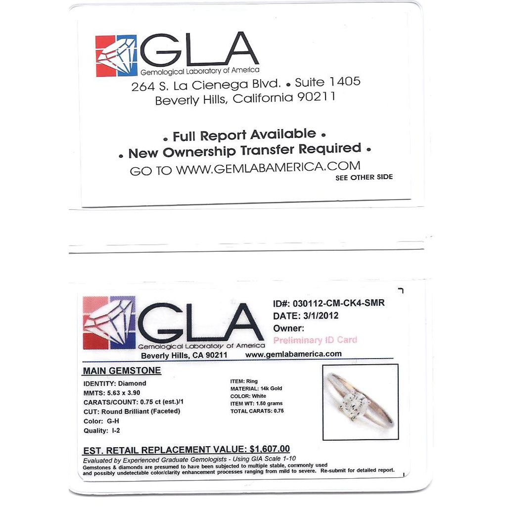 0.75 CTW 14K GOLD DIAMOND RING ROUND G-H/I2 **|**|** 0.75 CTW 14K GOLD DIAMOND RING ROUND G-H/I2 ; MSRP: $1607