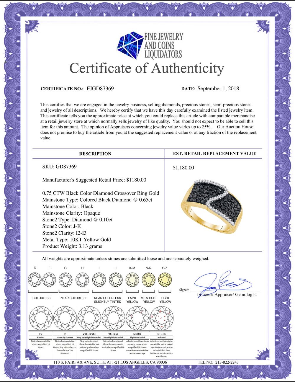 REF-30W2K- SKU: GD87369 ---- 0.75 CTW Black Color Diamond Crossover Ring 10KT Yellow Gold