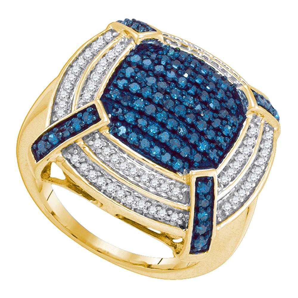 REF-61W5K- SKU: GD87321 ---- 0.75 CTW Blue Color Diamond Corner Cluster Ring 10KT Yellow Gold