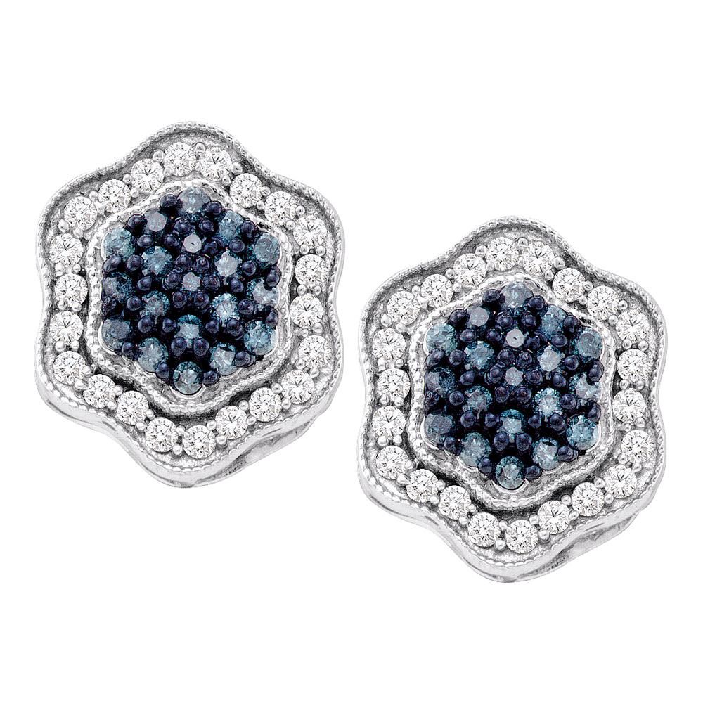 REF-41M9H- SKU: GD58487 ---- 0.75 CTW Blue Color Diamond Hexagon Cluster Earrings 10KT White Gold