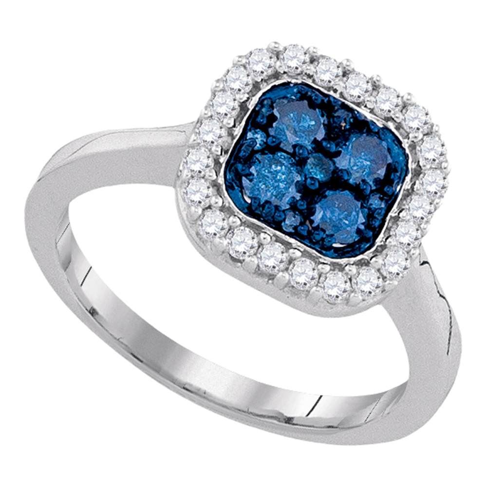 REF-44F9N- SKU: GD90365 ---- 0.75 CTW Blue Color Diamond Square Cluster Ring 10KT White Gold