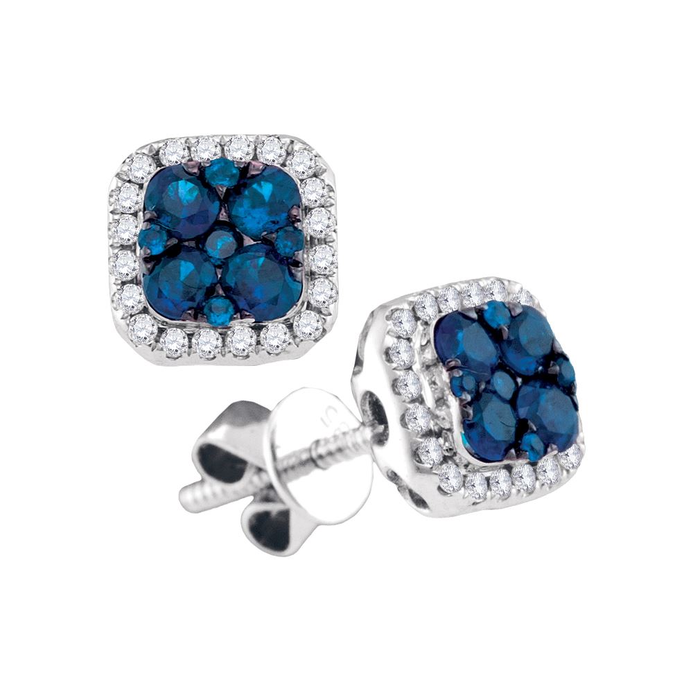 REF-71F9N- SKU: GD95467 ---- 0.75 CTW Blue Sapphire Square Cluster Diamond Earrings 14KT White Gold