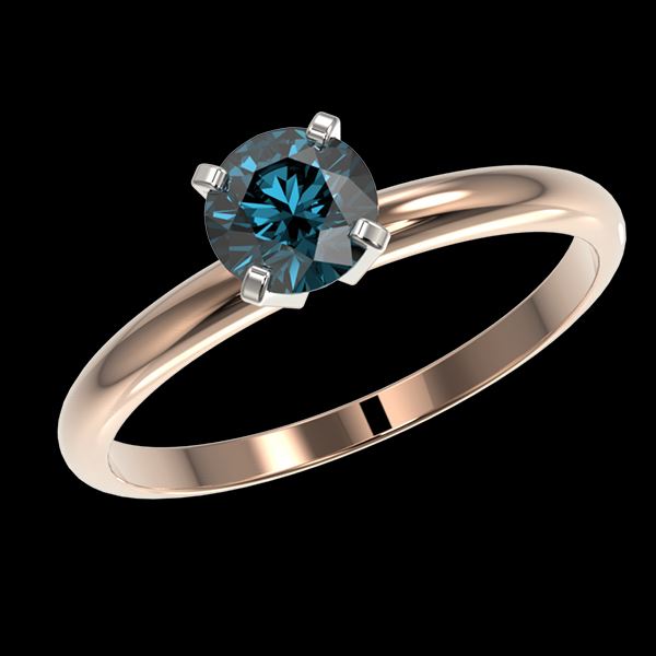 REF-118H2A -32881 ---- 0.75 CTW Certified Intense Blue SI Diamond Solitaire Engagement Ring 10K Rose Gold ---- Luxury Designer Brand Ring Appraised at $7,150 Certificate Number US32881 10k Rose gold, Ring Size is 7, Ring measuring approx. Uniform, weighing in total approx. 2.8 grams. Made in the USA and is stamped 10k, Main stone 0.75 carat total weight containing 1 pieces of Intense Fancy Blue color with SI quality Round shape cut Diamond , Stone #2 carat total weight containing pieces of color with quality shape cut