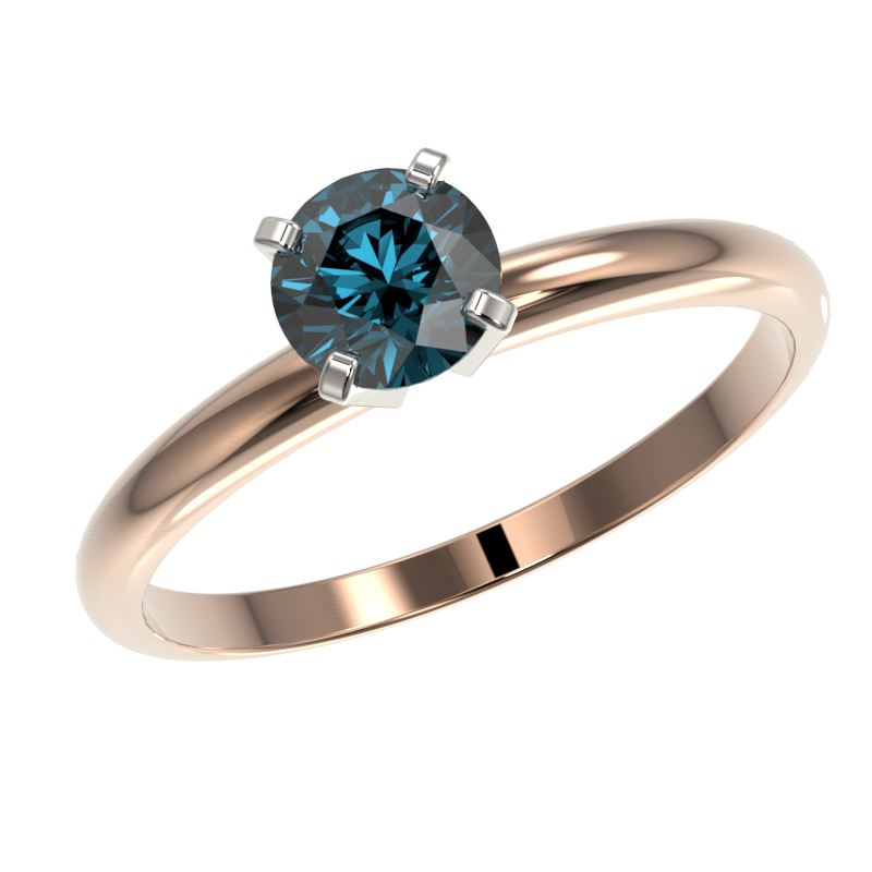 0.75 CTW Certified Intense Blue SI Diamond Solitaire Engagement Ring 10K Rose Gold ---- Luxury Designer Brand Ring Appraised Retail Price at $5,150 ---- SKU Number US32881 10k Rose gold Ring Size is 7, Ring measuring approx. Uniform, weighing in total approx. 2.8 grams. Made in the USA and is stamped 10k, Main stone 0.75 carat total weight containing 1 pieces of Intense Fancy Blue color with SI quality Round shape cut Diamond , Stone #2 carat total weight containing pieces of color with quality shape cut