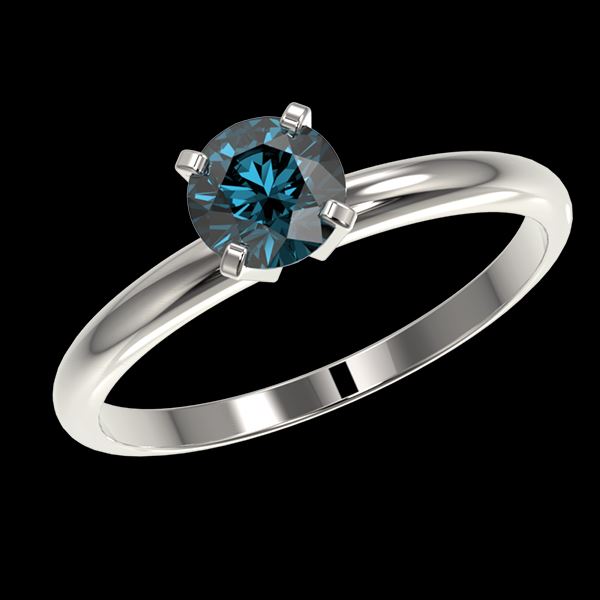REF-118X2T -32880 ---- 0.75 CTW Certified Intense Blue SI Diamond Solitaire Engagement Ring 10K White Gold ---- Luxury Designer Brand Ring Appraised at $7,150 Certificate Number US32880  10k White gold,  Ring Size is 7, Ring measuring approx. Uniform, weighing in total approx. 2.8 grams. Made in the USA and is stamped 10k, Main stone 0.75 carat total weight containing 1 pieces of Intense Fancy Blue color with SI  quality Round shape cut Diamond , Stone #2  carat total weight containing  pieces of  color with quality  shape cut
