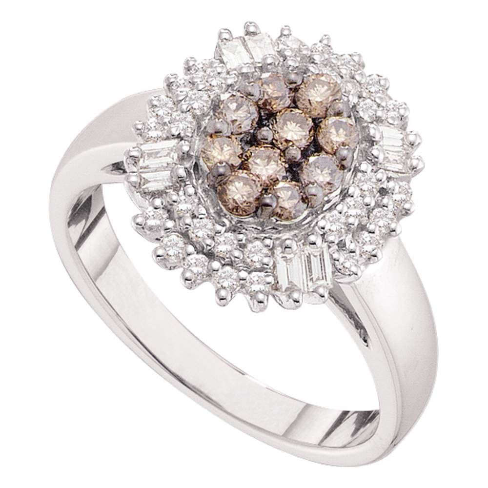 REF-75X2Y- SKU: GD52076 ---- 0.75 CTW Cognac-brown Color Diamond Oval Cluster Ring 14KT White Gold