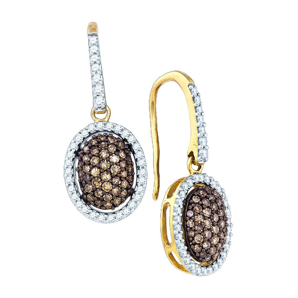 REF-55F3M ---- 0.75 CTW Cognac-brown Colored Diamond Dangle Earrings 10K Yellow Gold - SKU: GD81606