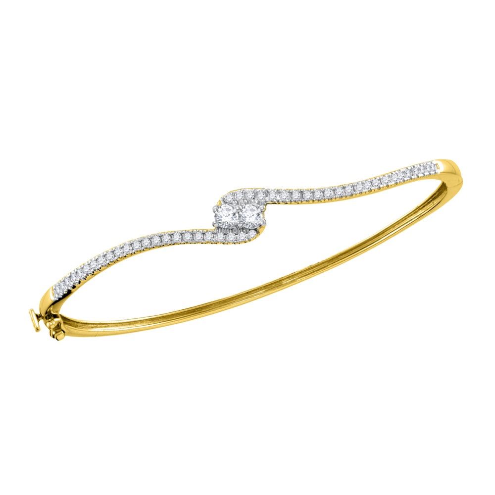 REF-112W5K- SKU: GD116410 ---- 0.75 CTW Diamond 2-stone Bypass Bangle Bracelet 14KT Yellow Gold