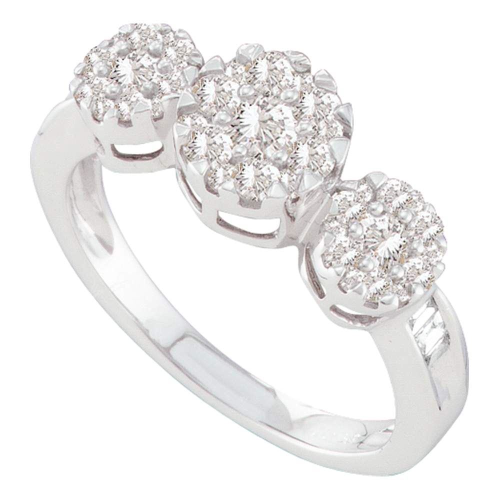 REF-82X4Y- SKU: GD44577 ---- 0.75 CTW Diamond Triple Flower Cluster Ring 14KT White Gold