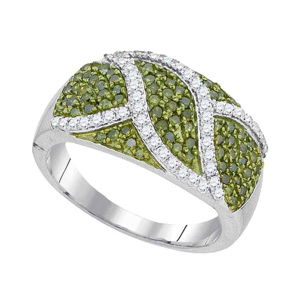 REF-41F9N- SKU: GD94832 ---- 0.75 CTW Green Color Diamond Fashion Ring 10KT White Gold
