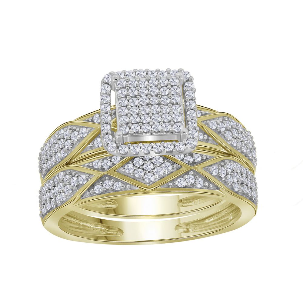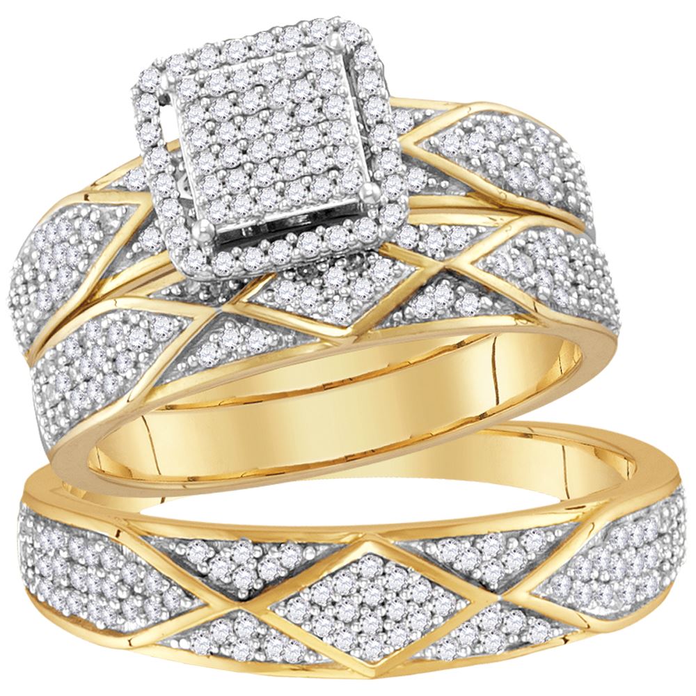 REF-67K4W- SKU: GD114214 ---- 0.75 CTW His & Hers Diamond Cluster Matching Bridal Ring 10KT Yellow Gold