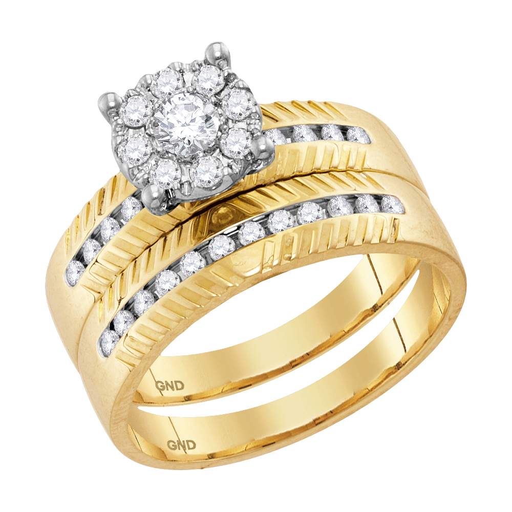 REF-131W2K- SKU: GD113870 ---- 0.75 CTW His & Hers Diamond Cluster Matching Bridal Ring 14KT Yellow Gold