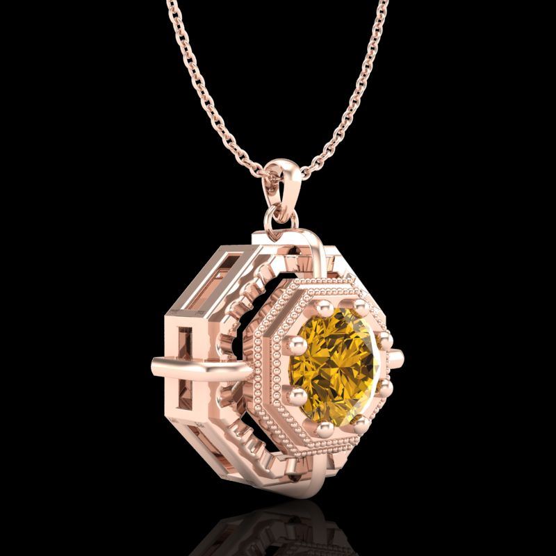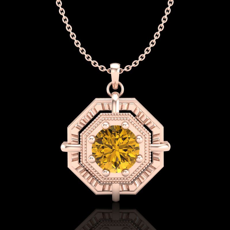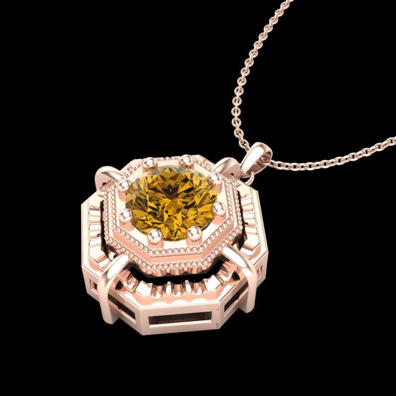 REF-153W6F -37463 ---- 0.75 CTW Intense Fancy Yellow Diamond Art Deco Stud Necklace 18K Rose Gold ---- Luxury Designer Brand NECKLACE Appraised at $9,300 Certificate Number US37463 18k Rose gold, NECKLACE Size is 16 Inches, NECKLACE measuring approx. Uniform, weighing in total approx. 5 grams. Made in the USA and is stamped 18k, Main stone 0.75 carat total weight containing 1 pieces of Intense Fancy Yellow color with SI quality Round shape cut Diamond , Stone #2 carat total weight containing pieces of color with quality shape cut