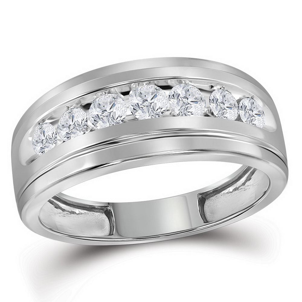 REF-52Y4X- SKU: GD112807 ---- 0.75 CTW Mens Channel-set Diamond Single Row Wedding Ring 10KT White Gold