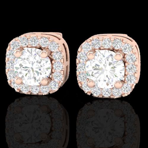 REF-66X2T -21173 ---- 0.75 CTW Micro Pave VS/SI Diamond Earrings Designer Halo 14K Rose Gold ---- Luxury Designer Brand Earring Appraised at $3,250 Certificate Number US21173 14k Rose gold, Earring Size is 7 1/2 Millimiter, Earring measuring approx. 7.5 mm X 7.5 mm , weighing in total approx. 2.3 grams. Made in the USA and is stamped 14k, Main stone 0.47 carat total weight containing 2 pieces of H-J color with VS/SI quality Round shape cut Diamond , Stone #2 0.28 carat total weight containing 32 pieces of H-I color with VS/SI quality Round shape cut Diamond