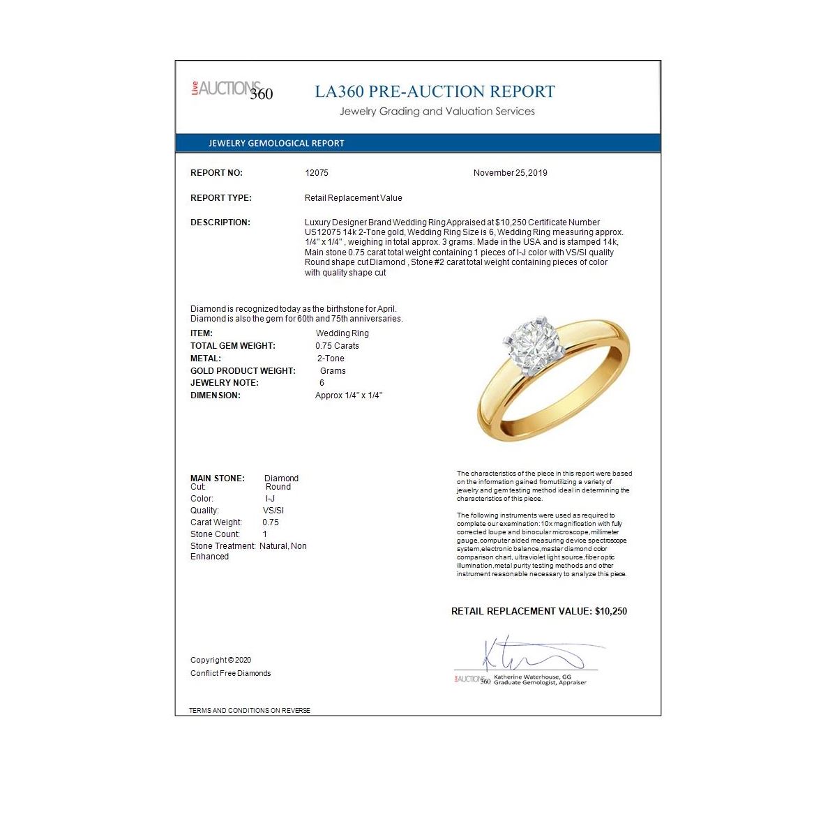 Total Gem weight: 0.75 carats