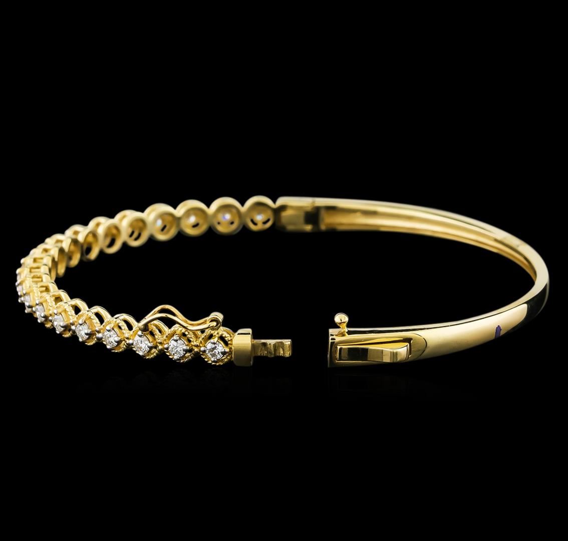 One electronically tested 14KT yellow gold lady's combination cast & assembled fashion bracelet with a tongue clasp with foldover safety with a bright polish finish. The featured lady's bracelet has a circumference of approximately 7 inches. Identified with markings of "K14". Condition is new, good workmanship. Containing: Twenty prong set round brilliant cut diamonds, measuring 2.20 - 2.10 x 1.33mm (depth est.) approximate total weight of 20 Stones = 0.75ct. Graded in the setting. Clarity: SI-1 to SI-2. Color: H - I. Cut Good. Total Weight of Diamonds 0.75ct. Total Weight of Bracelet 11.00gm. GAS Appraised at $3,495.00.