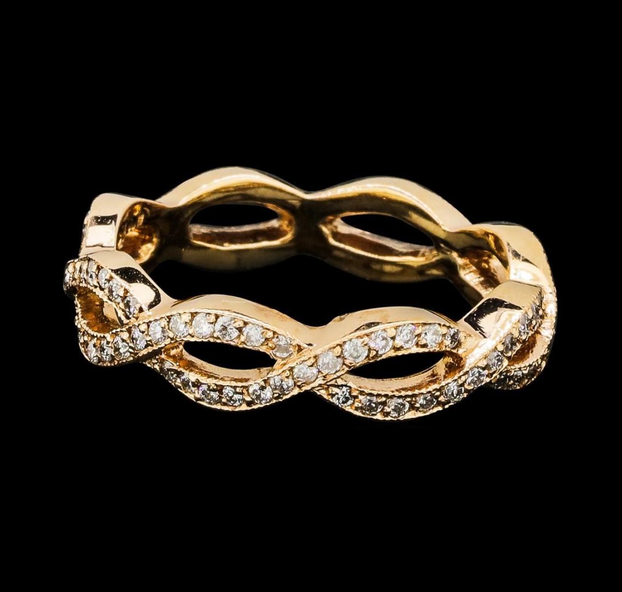 One lady's eternity ring featuring: 14KT rose gold weighing 3.2 grams containing diamonds weighing 0.75ctw.