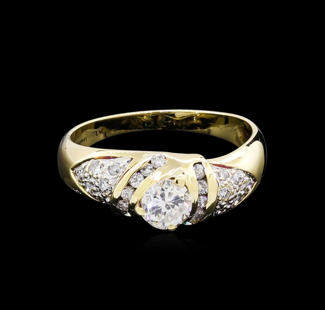 One ring featuring: 14KT yellow gold weighing 3.10 grams containing one center diamond with a total weight of 0.50ct and side diamonds with a total weight of 0.25ct.