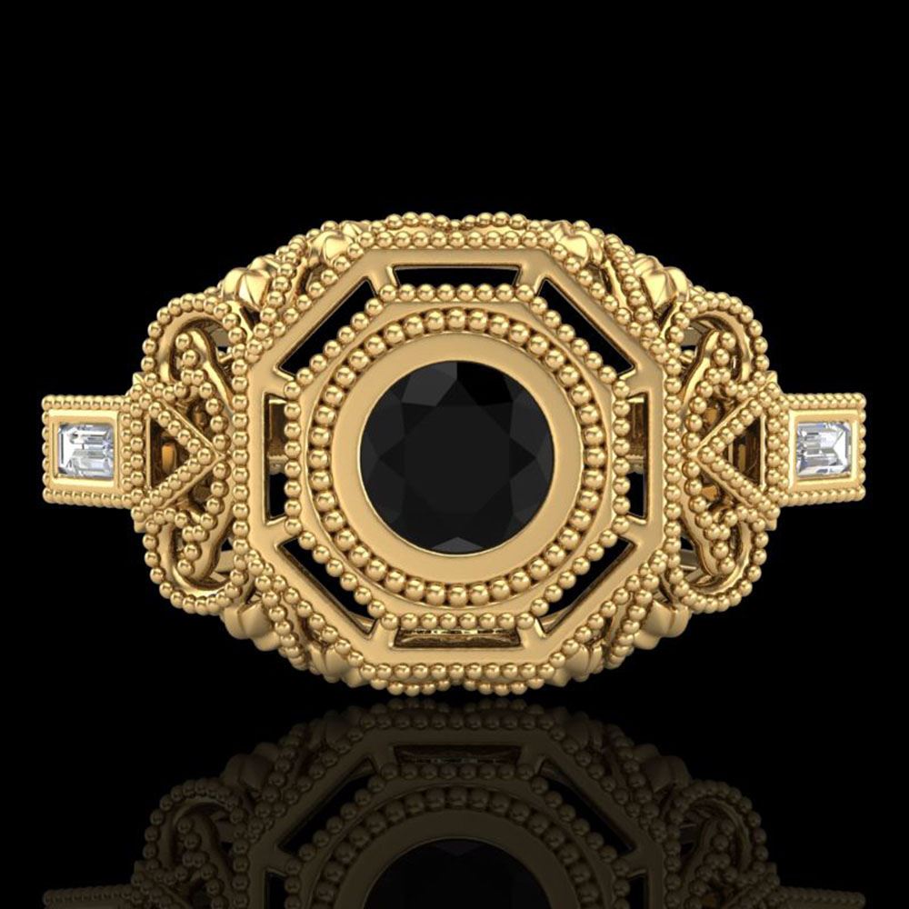 REF-118A2N - SKU: 37816 ---- 0.75 ctw Fancy Black Diamond Engagment Art Deco Ring 18k Yellow Gold