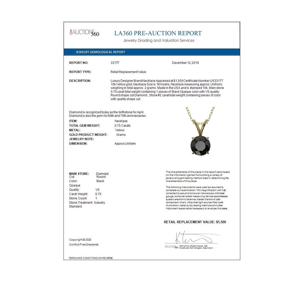 REF-18M4G - SKU: 33177 ---- 0.75 ctw Fancy Black Diamond Solitaire Necklace 10k Yellow Gold