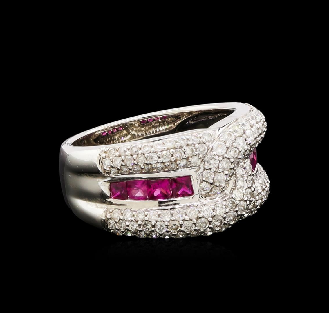 One ring featuring: 14KT white gold weighing 7.40 grams containing rubies with a total weight of 0.75ct and side diamonds with a total weight of 1.06ct.