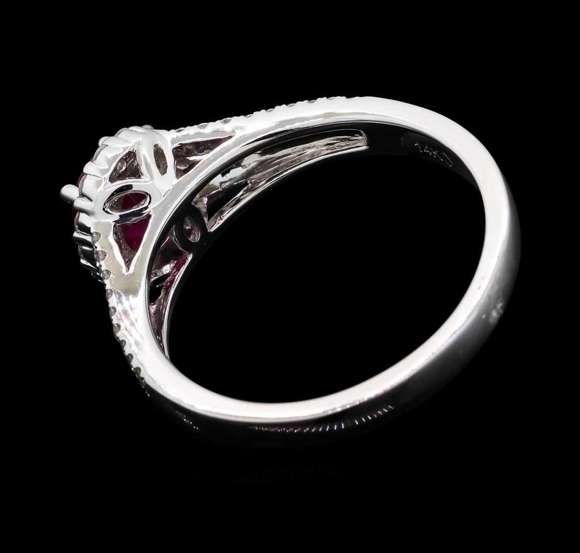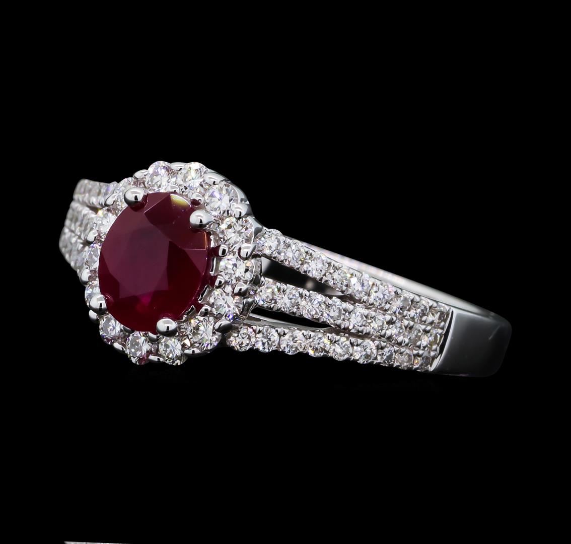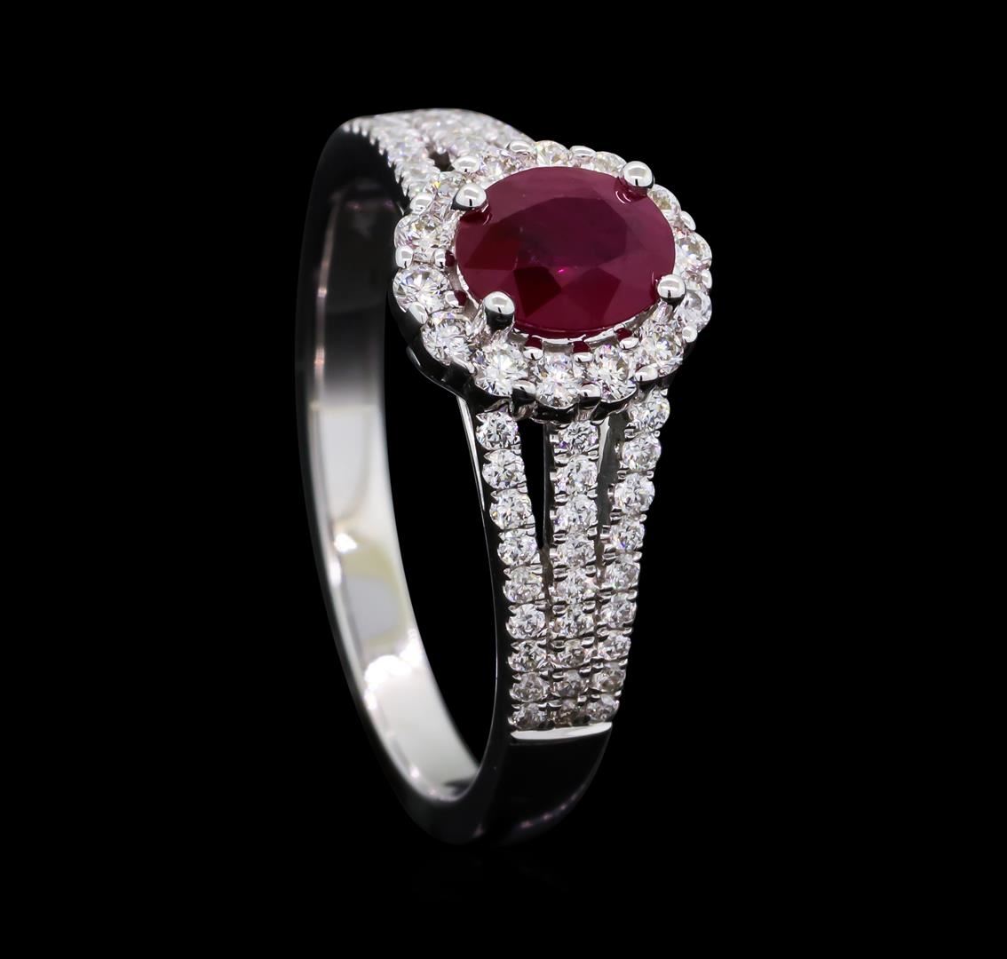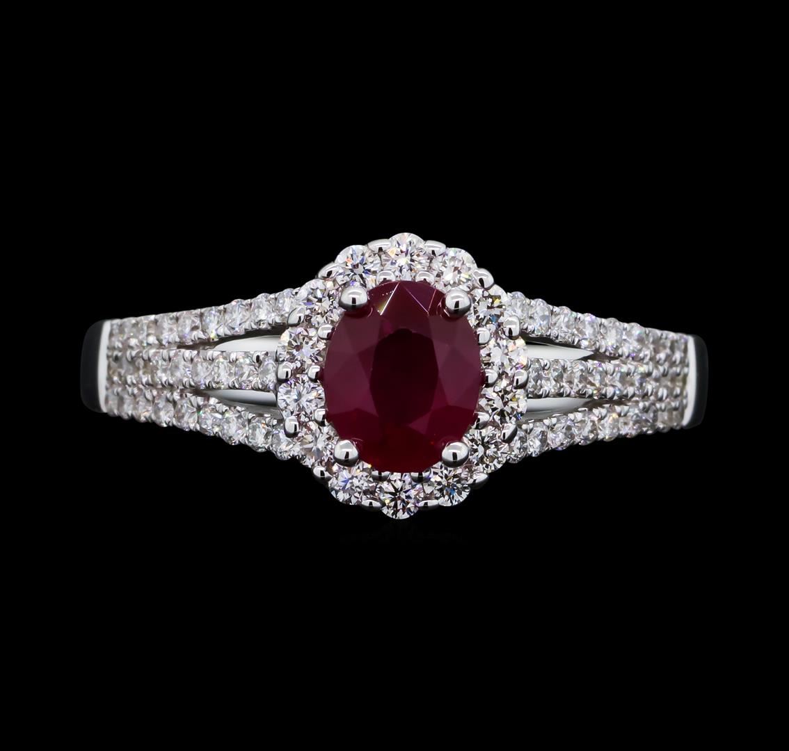 One ring featuring: 14KT white gold weighing 2.3 grams containing one ruby weighing 0.75ct and diamonds weighing 0.46ctw.