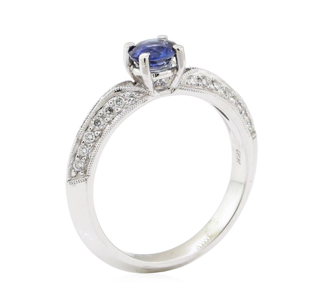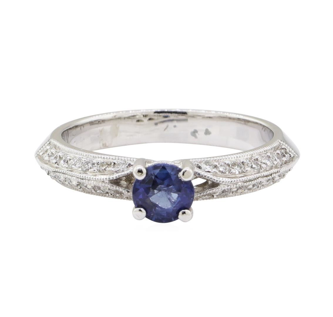 One ring featuring: 18KT white gold weighing 4.0 grams containing one blue sapphire weighing 0.50 ct and diamonds weighing 0.25ctw.