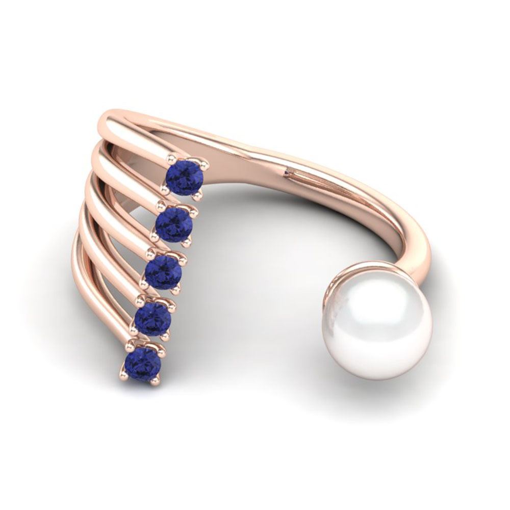 REF-25M2G - SKU: 20861 ---- 0.75 ctw Tanzanite & White Pearl Designer Ring 14k Rose Gold
