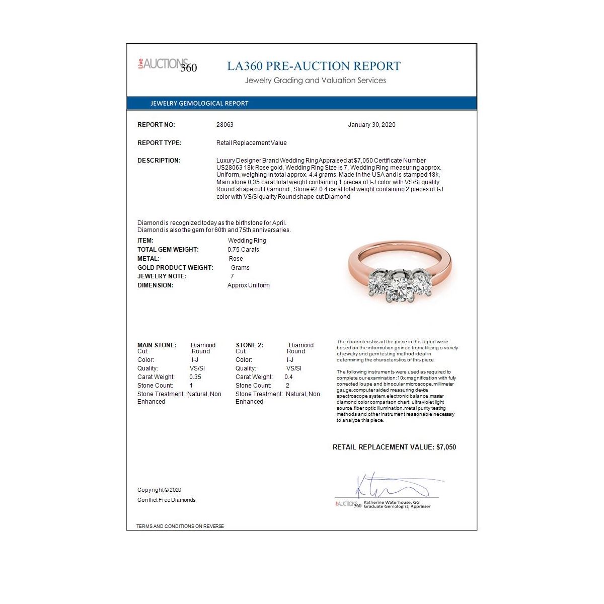 REF-96A4N - SKU: 28063 ---- 0.75 ctw VS/SI Diamond 3 Stone Ring 18k Rose Gold