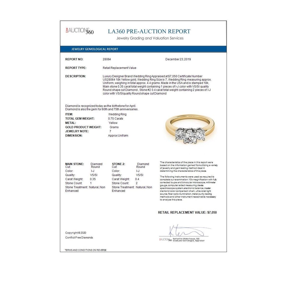 REF-96F4M - SKU: 28064 ---- 0.75 ctw VS/SI Diamond 3 Stone Ring 18k Yellow Gold