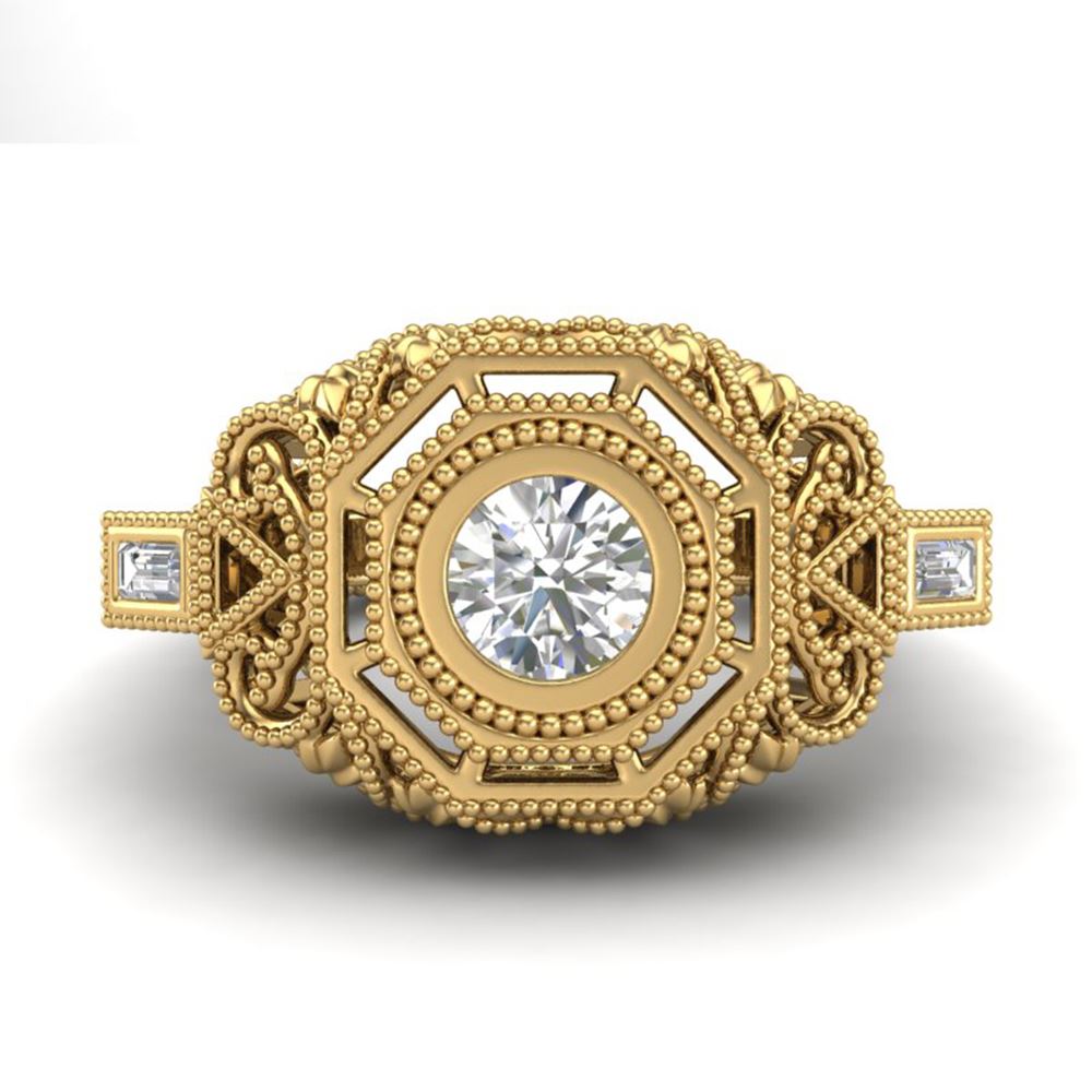 REF-200Y2X - SKU: 37045 ---- 0.75 ctw VS/SI Diamond Solitaire Art Deco Ring 18k Yellow Gold
