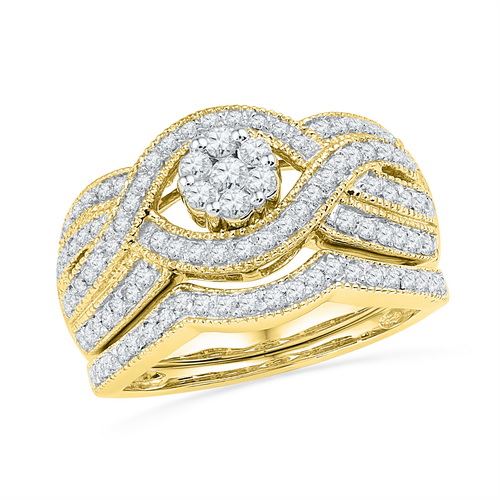 REF-59X9M ---- 0.75CT Diamond Flower 10KT Ring Yellow Gold - SKU: GD 101427